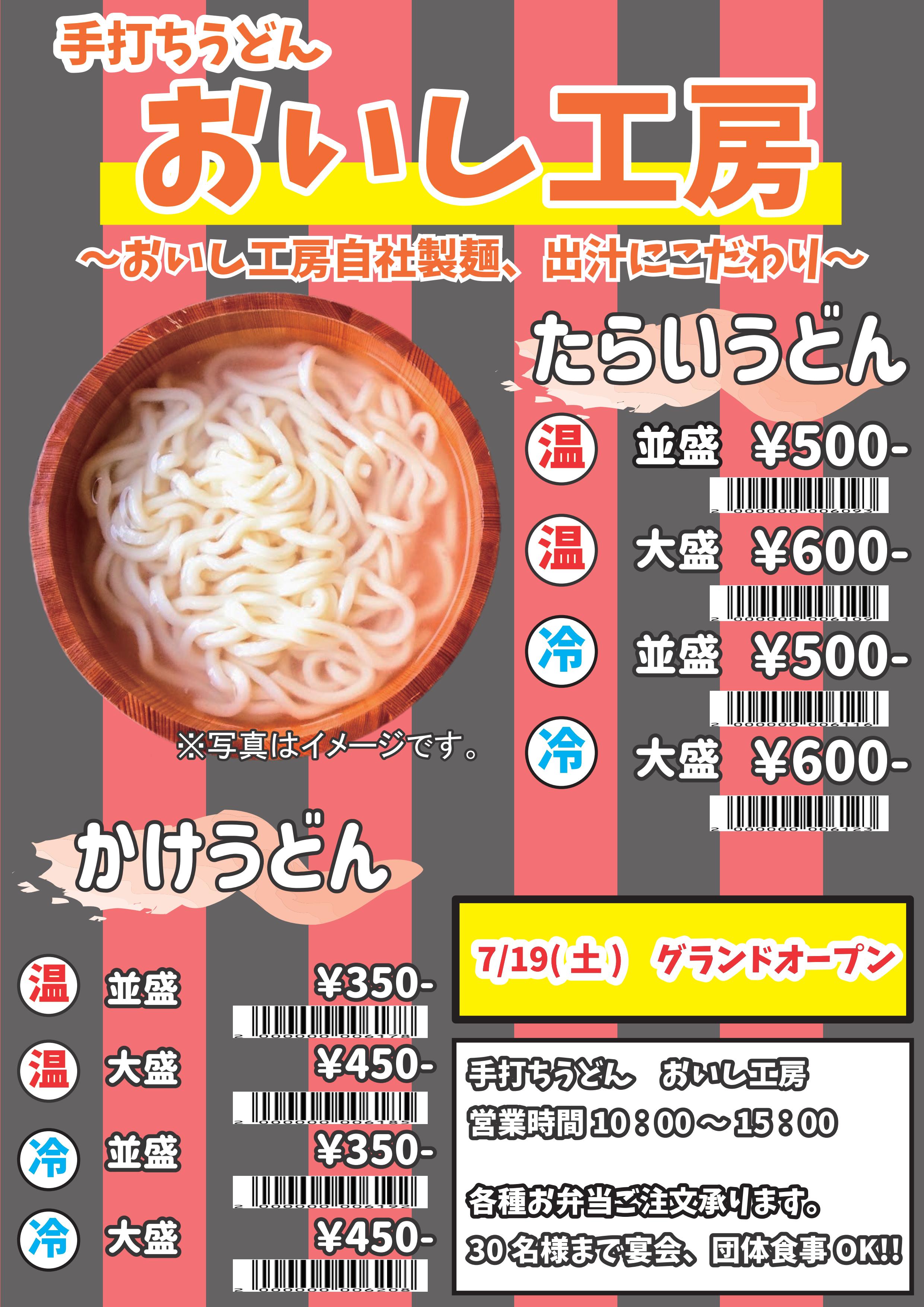 「手打ちうどん おいし工房」休業日のお知らせ【10/5】