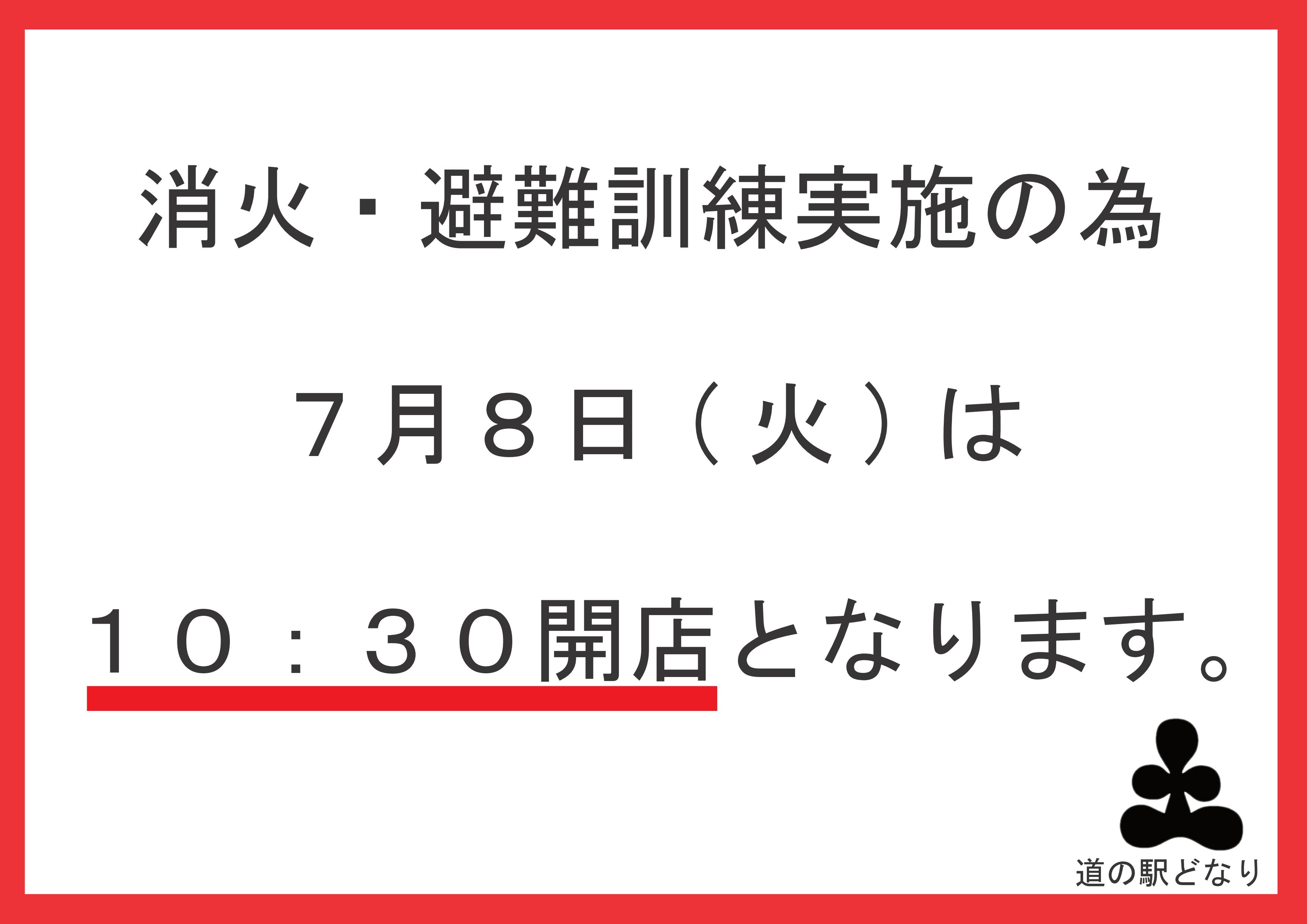 【7/8】消火・避難訓練の為、7月8日は開店時間を変更します。
