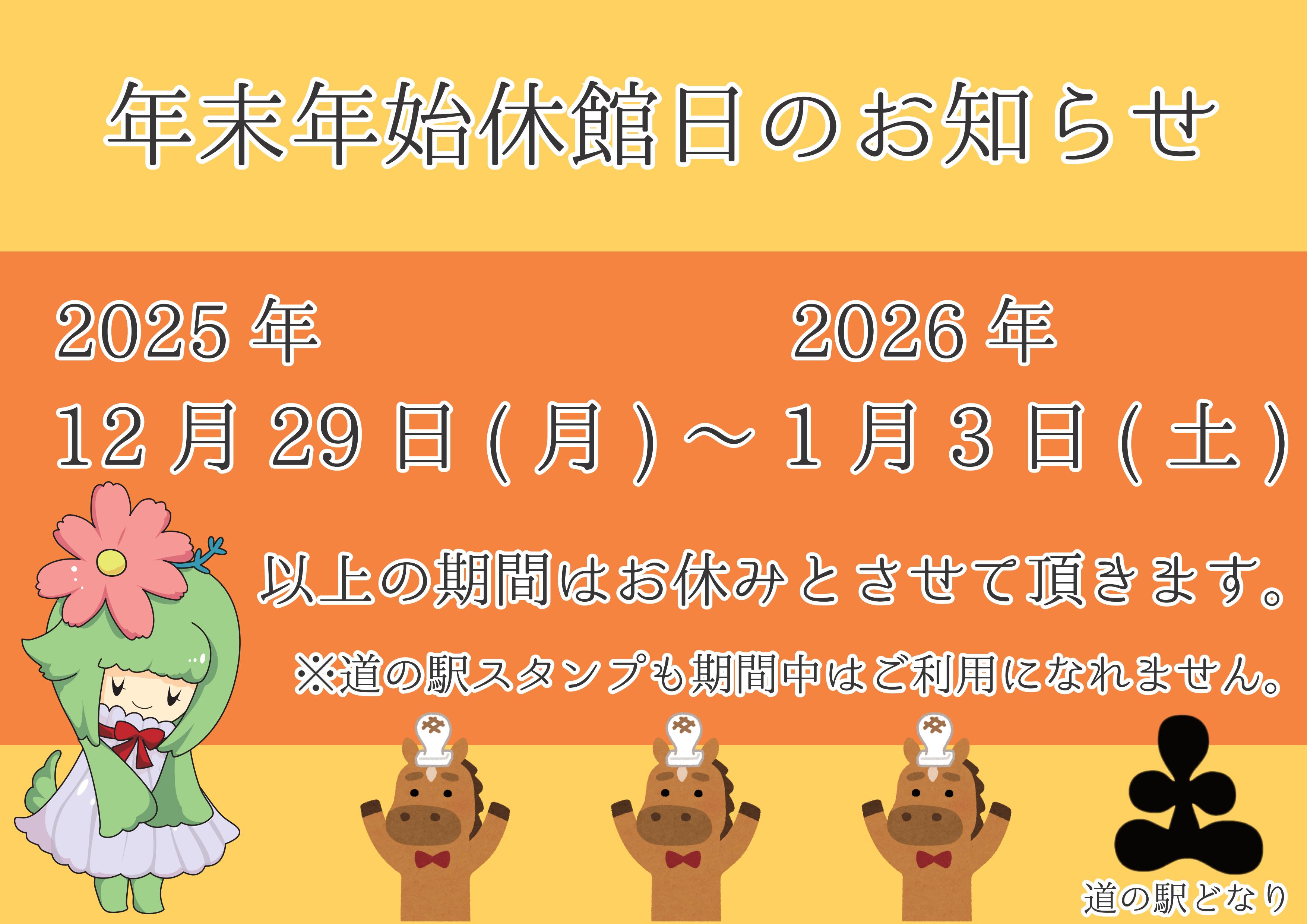 年末年始休館日のお知らせ+手打ちうどんおいし工房閉店のお知らせ